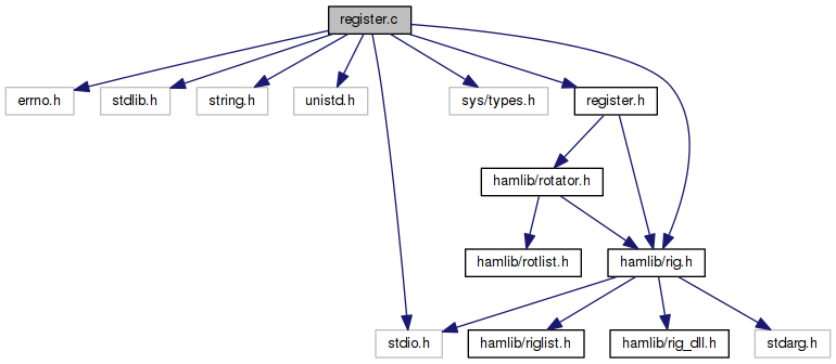 #include <errno.h>#include <stdlib.h>#include <string.h>#include <unistd.h>#include <stdio.h>#include <sys/types.h>#include <register.h>#include <hamlib/rig.h>