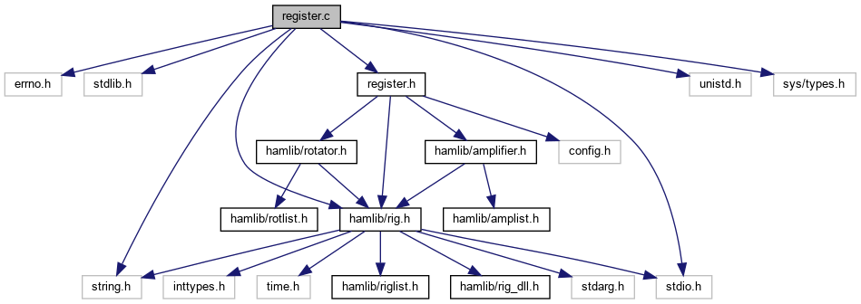 #include <errno.h>#include <stdlib.h>#include <string.h>#include <unistd.h>#include <stdio.h>#include <sys/types.h>#include <register.h>#include <hamlib/rig.h>